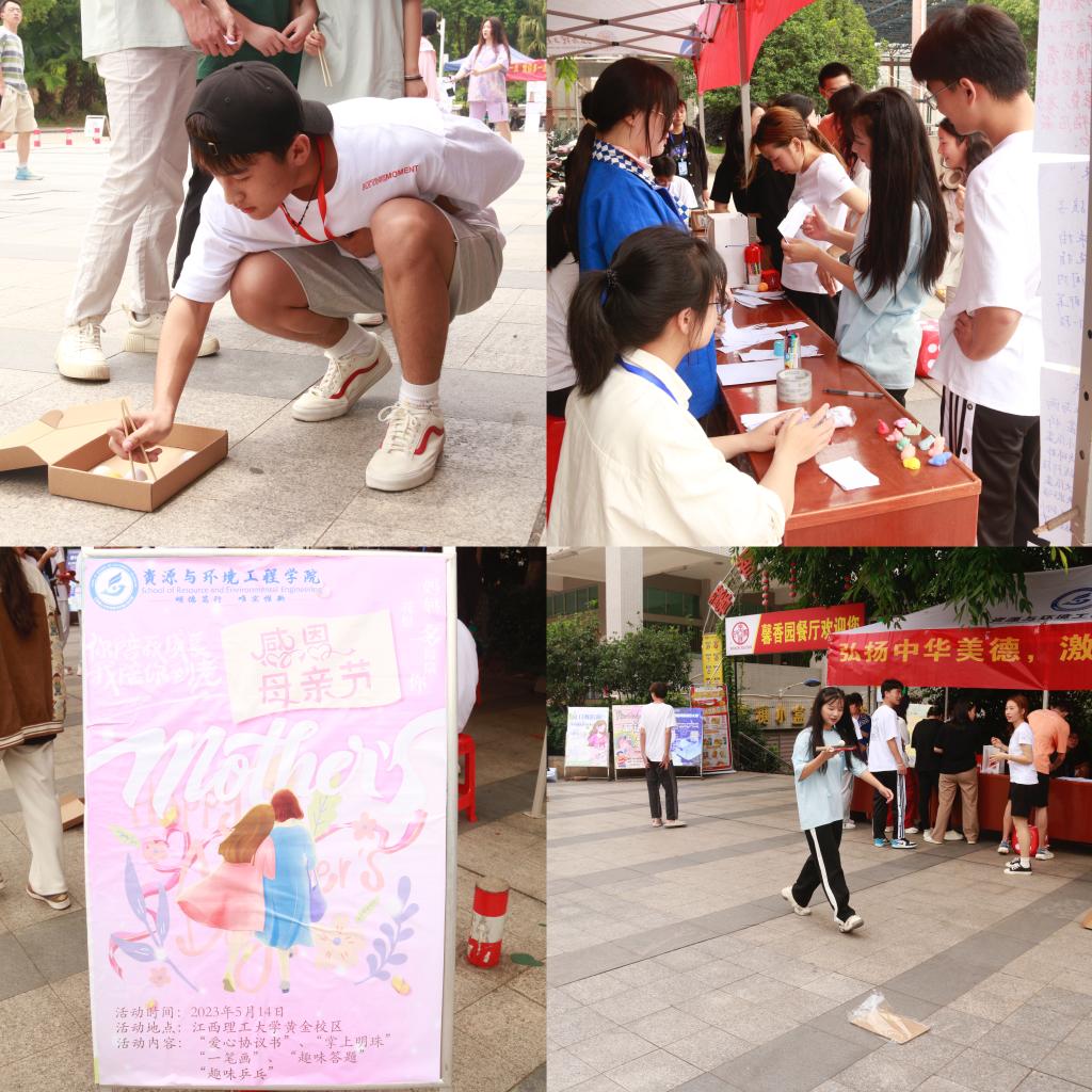 本网讯 5月14日,我院青年志愿者协会于黄金校区食堂门口举办2023年“弘扬中华美德,激发感恩情怀”母亲节活动,包含爱心协议书、掌上明珠、趣味答题等。在这个表达爱的节日,通过这些小游戏可以让大家充分表达自己心中对母亲的爱。