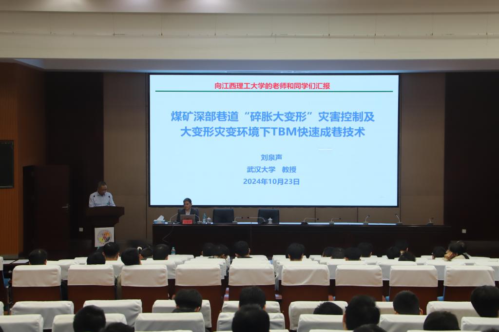 本网讯 10月23日,武汉大学刘泉声教授受邀来校在黄金校区逸夫楼学术报告厅做了题为“深部巷道碎胀大变形灾害控制及大变形灾变环境下TBM快速成巷技术”学术报告讲座。学院、应急管理与安全工程学院等相关专业老师和学生参加了讲座。讲座由应急管理与安全工程学院院长彭频主持。