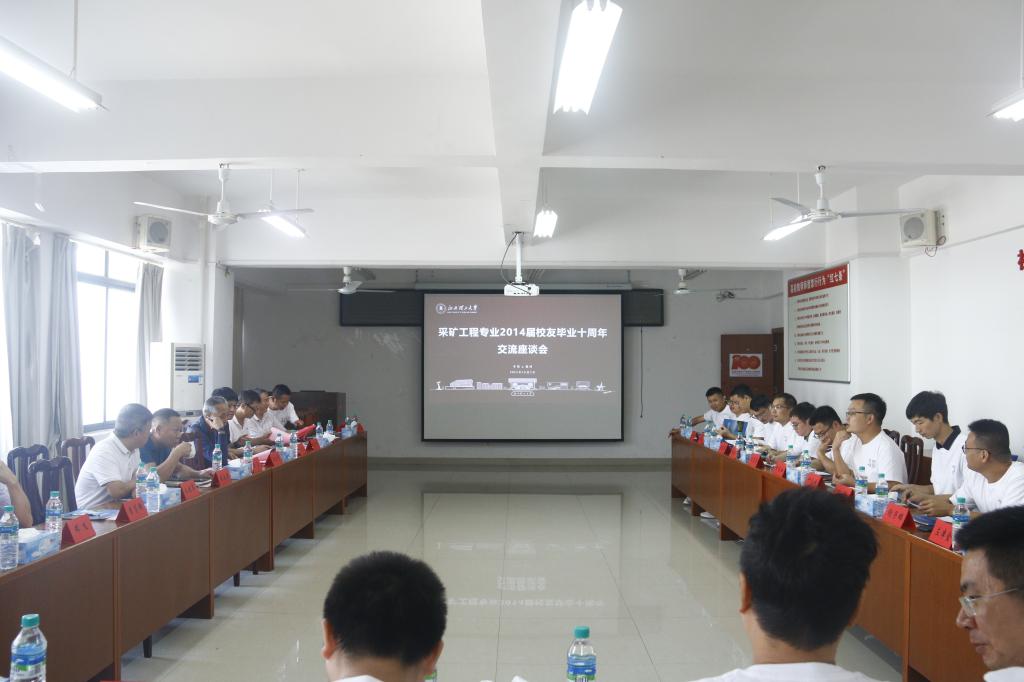 本网讯  10月2日,采矿工程04届及14届校友们在毕业20周年、10周年之际重返母校,并分别于黄金校区逸夫楼第一会议室和第二会议室展开座谈会,赣南科技学院副校长何锦龙、资源与环境工程学院党委副书记张春雷,应急管理与安全工程学院副院长王晓军等相关领导和采矿专业相关教师参加了座谈会。