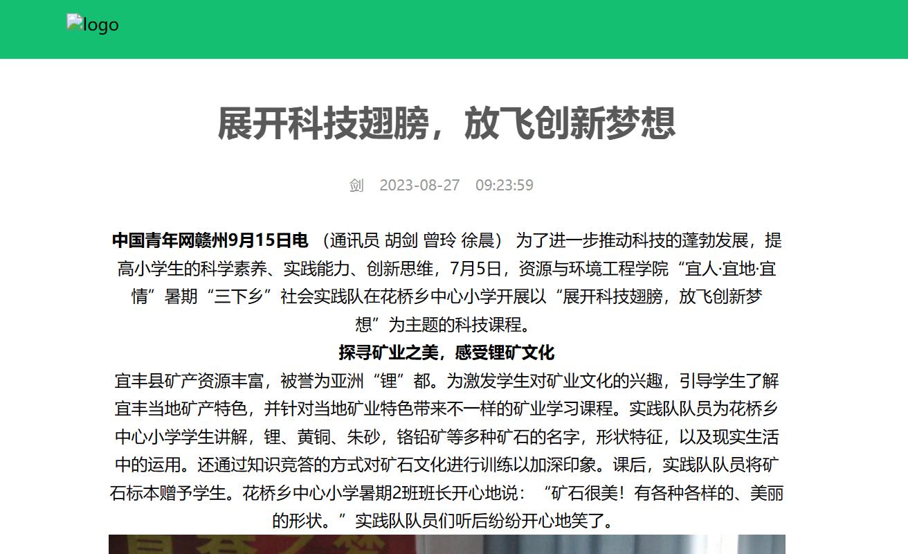 中国青年网赣州9月15日电 (通讯员 胡剑 曾玲 徐晨) 为了进一步推动科技的蓬勃发展,提高小学生的科学素养、实践能力、创新思维,7月5日,资源与环境工程学院“宜人·宜地·宜情”暑期“三下乡”社会实践队在花桥乡中心小学开展以“展开科技翅膀,放飞创新梦想”为主题的科技课程。