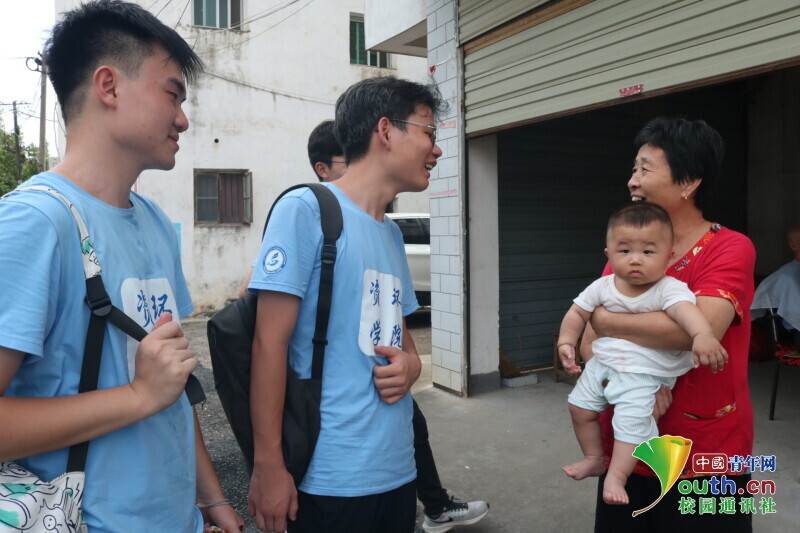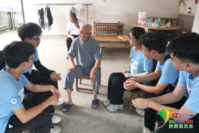 图为实践队队员和赵治明聊天交谈。中国青年网通讯员 曾玲 摄