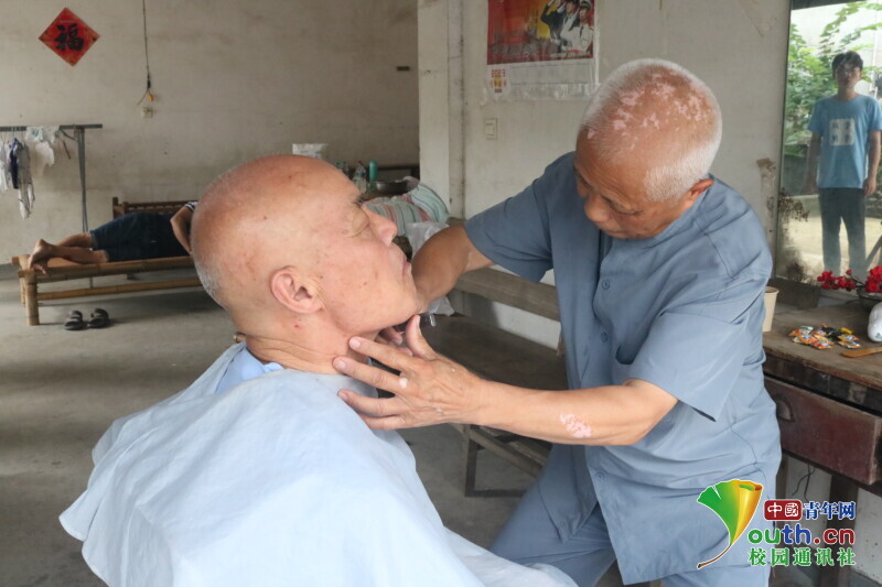 图为赵治明帮村里老人理发。中国青年网通讯员 胡剑 摄
