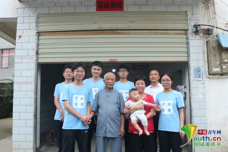 图为实践队队员和赵治明一家合影留念。中国青年网通讯员 曾玲 摄