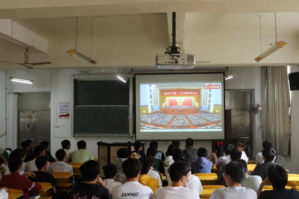 我院通过线下集中收看、线上自主收看相结合的形式组织全体师生聆听习近平总书记重要讲话。学院领导班子、党委委员和师生代表在黄金校区逸夫楼学术报告厅集中收看党的二十大开幕盛况,其他师生以教研室、班级、寝室等为单位在教室、自习室、宿舍等场所收看直播。