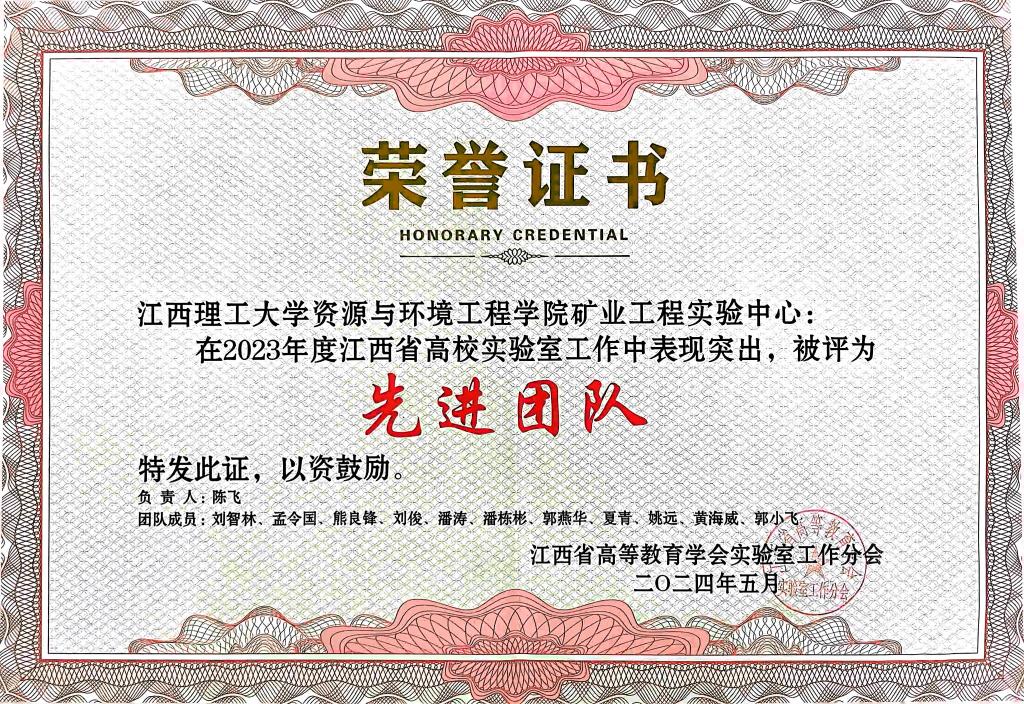 我院矿业工程实验中心(负责人:陈飞)荣获“2023年度江西省高校实验室工作先进团队”称号、院实验中心刘智林老师荣获“2023年度江西省高校实验室工作先进个人”称号。