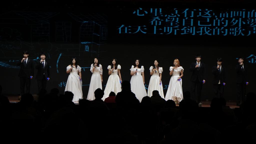 本次比赛延续分组评奖机制,按伴奏类型分为乐器伴奏或无伴奏组(A组)与音乐伴奏组(B组)。各参赛队伍需在无指挥、无伴舞的条件下,以不超过12人的团队完成兼具声部层次与舞台设计的表演。我院参赛队伍紧扣比赛要求,以清新自然的演唱风格演绎《我有一个装满星星的口袋》,通过细腻的和声与默契的配合,展现了学子对音乐的理解与热爱,赢得现场观众的热烈掌声。