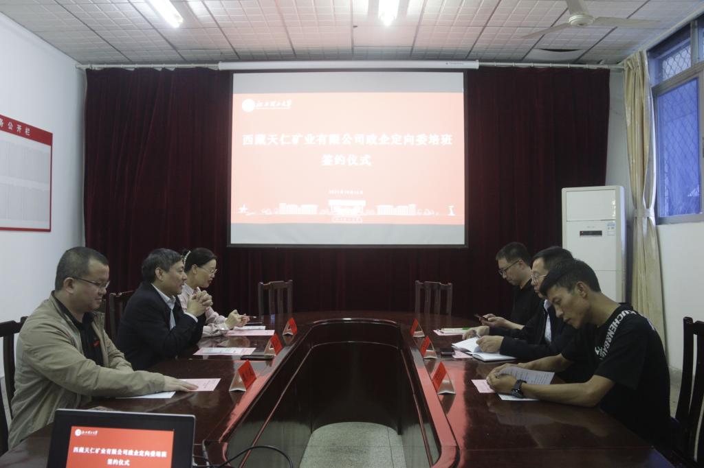 本网讯  10月16日,我校与西藏天仁矿业有限公司在红旗校区图书馆会议室和赵氟隆学术报告厅举行政企定向委培班签约仪式和开班仪式。我校党委副书记罗仙平,西藏天仁矿业有限公司总经理王平,委培班政府管理员桑旦多杰、企业管理员魏官文,我院院长何桂春、党委书记陈明、党委副书记张春雷,我校继续教育学院副院长魏川波,继续教育学院相关工作人员培训班辅导员、班主任和全体委培班学员参加了相关会议。开班仪式由陈明主持。