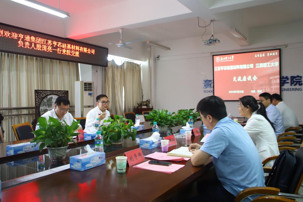 本网讯 5月28日江苏亨芯石英科技有限公司董事长、江苏亨芯硅基材料有限公司负责人殷国亮,江苏亨芯硅基材料有限公司人力资源部负责人金雷一行来访交流我院院长何桂春党委副书记张春雷副院长余新阳和相关专业老师接待了殷国亮一行并在黄金校区逸夫楼第一会议室举行座谈交流会。会议由何桂春主持。