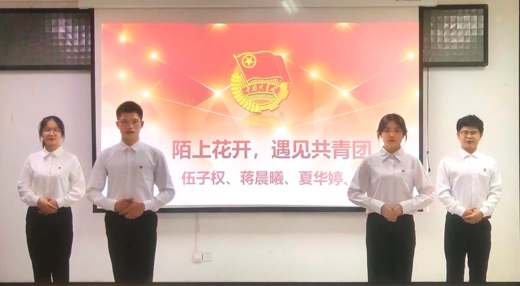 来自大学生红色文化宣讲团的伍子权、夏华婷、蒋晨曦、徐俊哲同学讲述了他们眼中共青团光辉而沧桑的的三个主要时期,了解每个时期共青团的时代特点,指出青年一代不能遗忘历史,在历史的浪潮中,走进团史,学习先辈精神,把握时代脉搏。