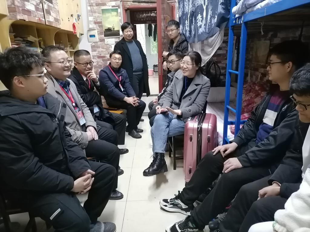 何桂春、陈明一行在走访过程中了解本科生、研究生的到校生活情况、复习备考情况,检查宿舍安全隐患,询问同学们所需,给予解决和指导,叮嘱同学们认真备考、整理好内务、调整状态迎接新学期。他们还重点提醒同学们注意人身财产安全、防范网络诈骗、坚持疫情防控不松懈。